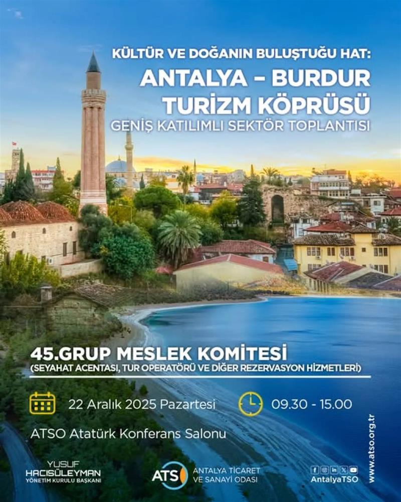 Antalya ve Burdur arasında sürdürülebilir iş birliği oluşturmayı ve turizm köprüsü kurmayı hedefleyen "Kültür ve Doğanın Buluştuğu Hat" Antalya–Burdur Turizm Köprüsü Geniş Katılımlı Sektör Toplantısı gerçekleştirildi.